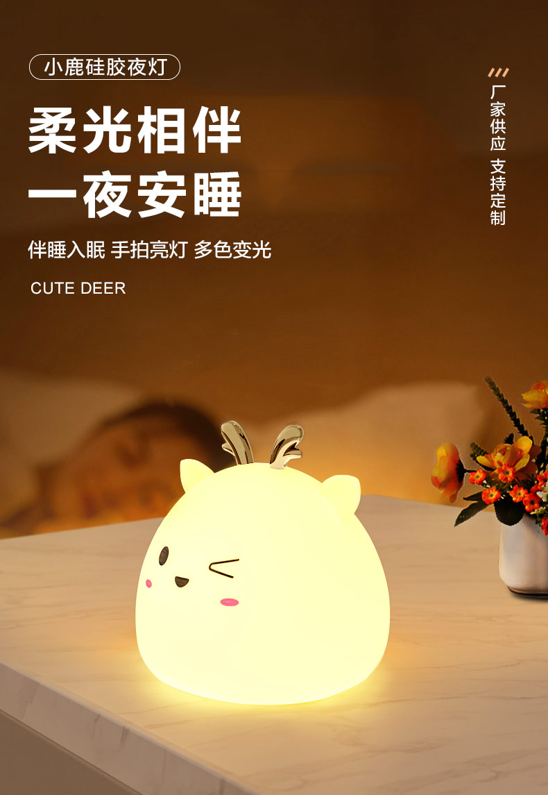 小鹿硅膠小夜燈 拍拍感應(yīng)燈喂奶起夜燈