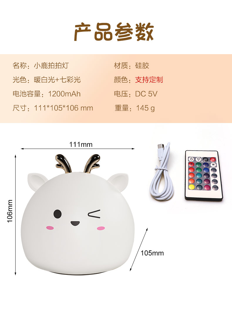 您的位置:首頁(yè) > 產(chǎn)品中心 > 硅膠家居用品 > 拍拍燈 > 小鹿硅膠小夜燈 拍拍感應(yīng)燈喂奶起夜燈
