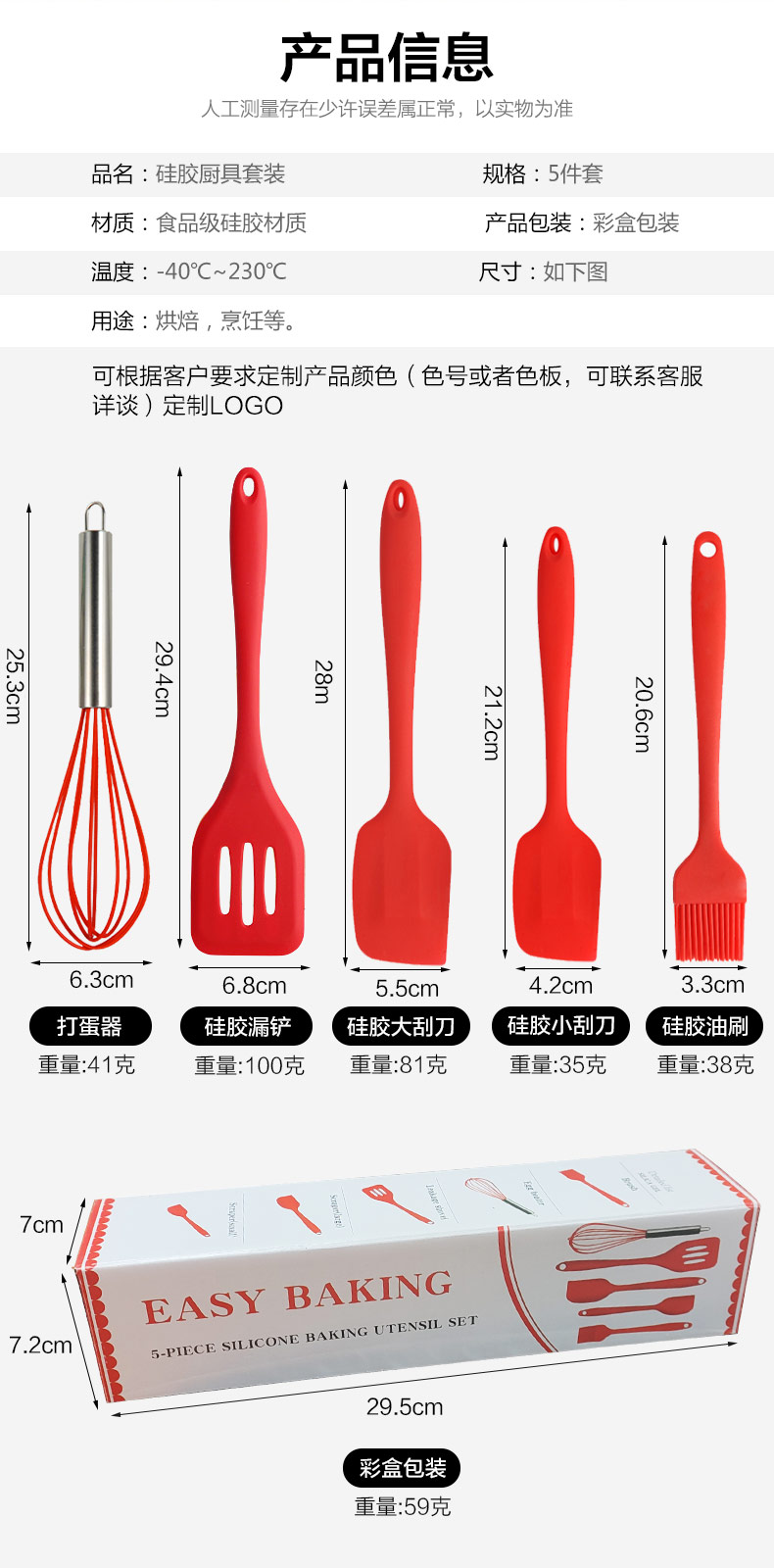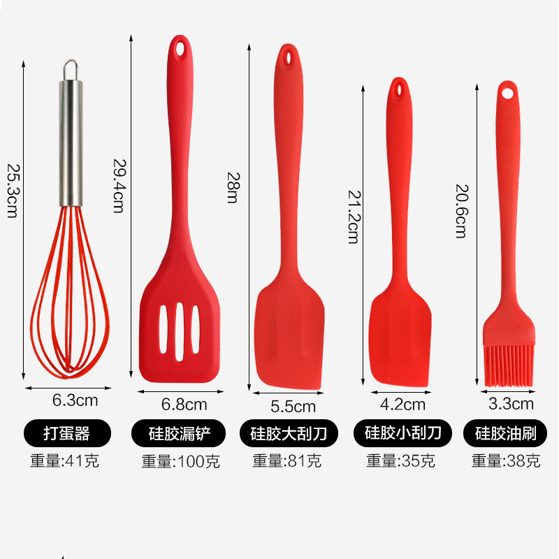 您的位置:首頁 > 產(chǎn)品中心 > 硅膠廚具用品 > 硅膠廚具5件套 廠家直銷 支持定制 可印LOGO