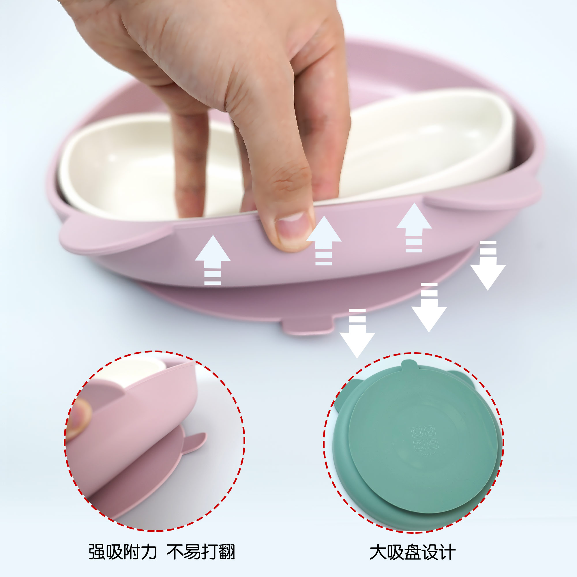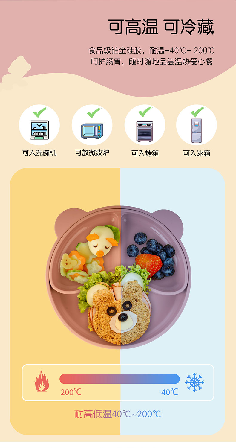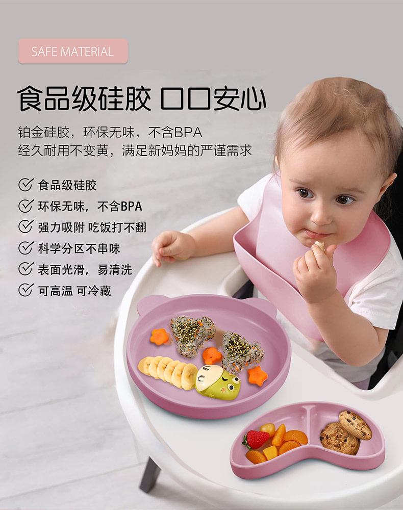 您的位置:首頁 > 產(chǎn)品中心 > 硅膠嬰童用品 > 硅膠碗 > 寶寶熱銷餐盤可拆分食品級硅膠分隔盤輔食吸盤三格兒童硅膠餐盤