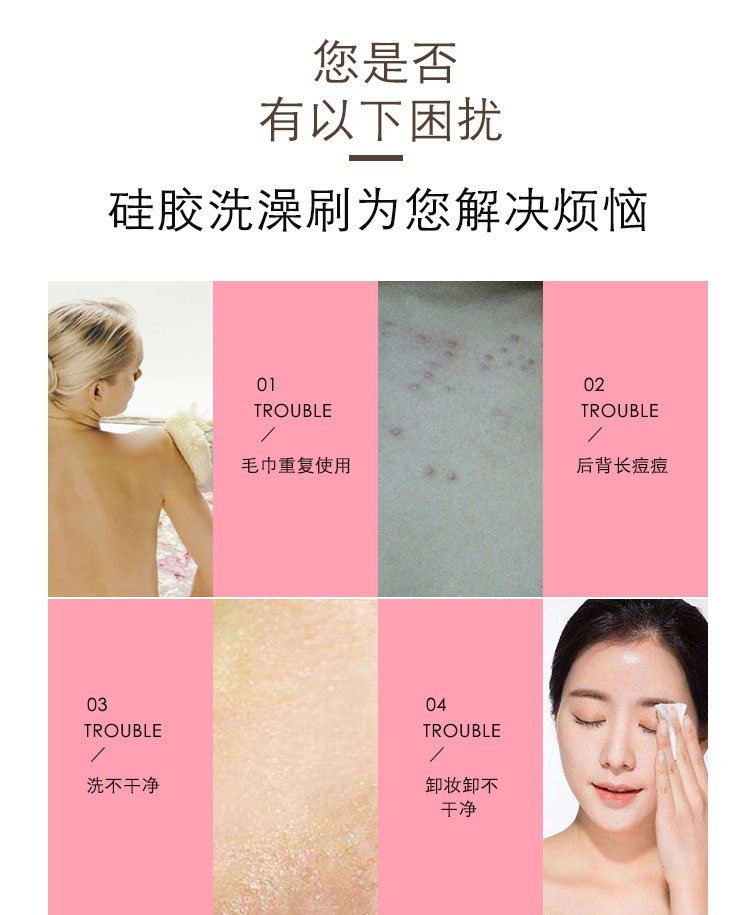 產(chǎn)品功能:洗澡時去除身體污垢,死皮,深層清潔與按摩